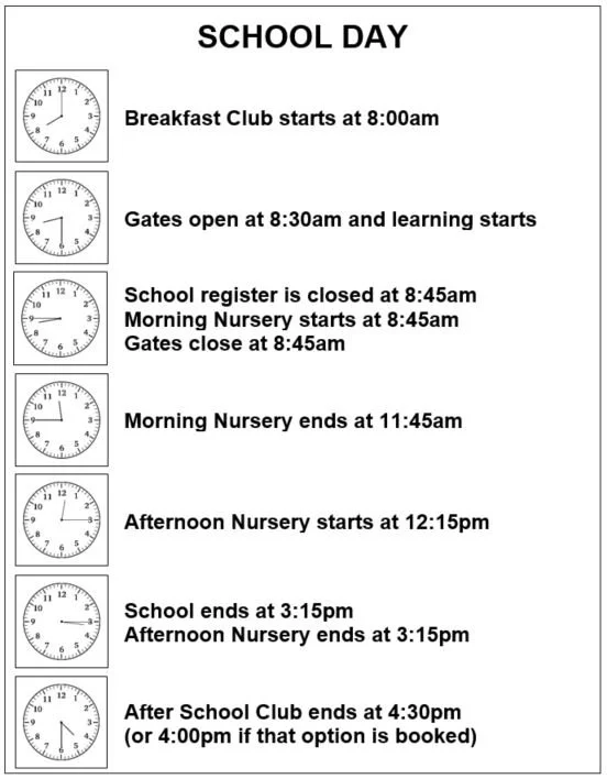 School ends at 3:15pm, children should be collected at this time. This is the official end of the compulsory school day.